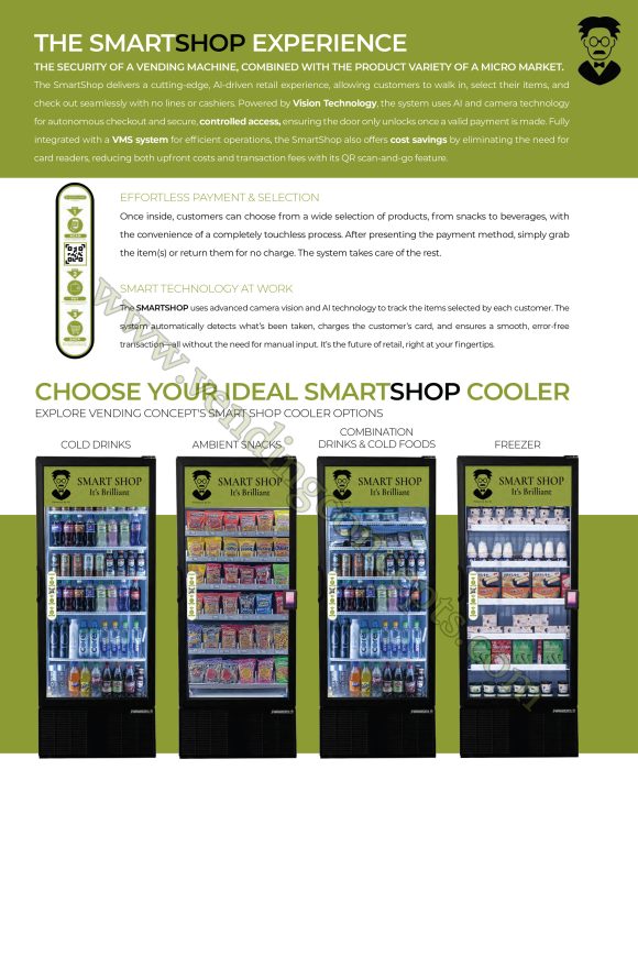 Introducing Smart Shop cooler, with AI technology! A breakthrough in unattended retail, powered by AI Vision cameras shrinkage…well it all but disappears. The Smart Shop cooler will surely increase sales and profit margin by no longer limiting what can be sold to what fits in a vending machine. It is the most secure automated retail system since vending machines were invented! No scanning or action from the consumer is required. Just pay, take and close the door and enjoy. REQUIRES INTERNET CONNECTION. (not included)