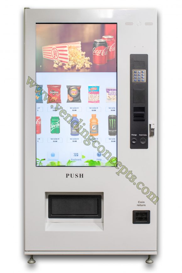 The VC-7208-50C Media-Max combination vending machine merchandiser has a huge 49” LED touchscreen!  It is designed to get attention and selling advertising on this screen can produce a steady subscription based revenue stream! Perfect for malls, entertainment venues, stadiums, car dealerships, etc. Use the Media-Max’s advertising ability to secure new accounts in high-traffic areas. It is easy to displace other vending companies with the Media-Max, it will be your best salesperson because the machine and its advertising abilities are unmatched by competitors!